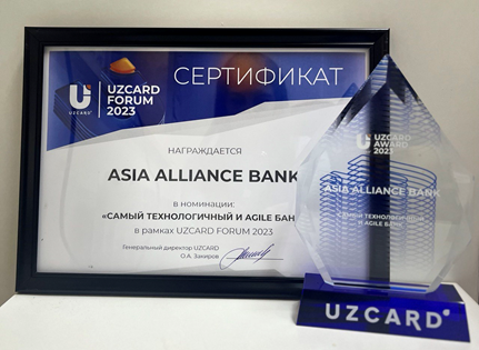 At the UZCARD FORUM 2023, held on October 26, 2023 at the InterContinental Tashkent hotel, «ASIA ALLIANCE BANK» was awarded in the category “The most technological and agile bank”.